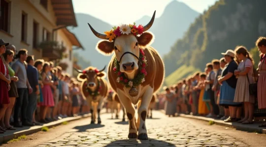 La désalpe, ce retour des troupeaux des alpages vers les étables de vallée à l’automne, constitue bien plus qu’un simple déplacement de bétail. C’est une célébration qui mobilise toute la communauté : les vaches sont parées de fleurs et de cloches, les bergers revêtent leurs costumes traditionnels, et le cortège descend dans une ambiance festive. Ce rituel marque la transition saisonnière et honore le travail pastoral accompli durant l’été. Pour les participants, il réaffirme le lien vital entre l’homme, l’animal et le territoire.